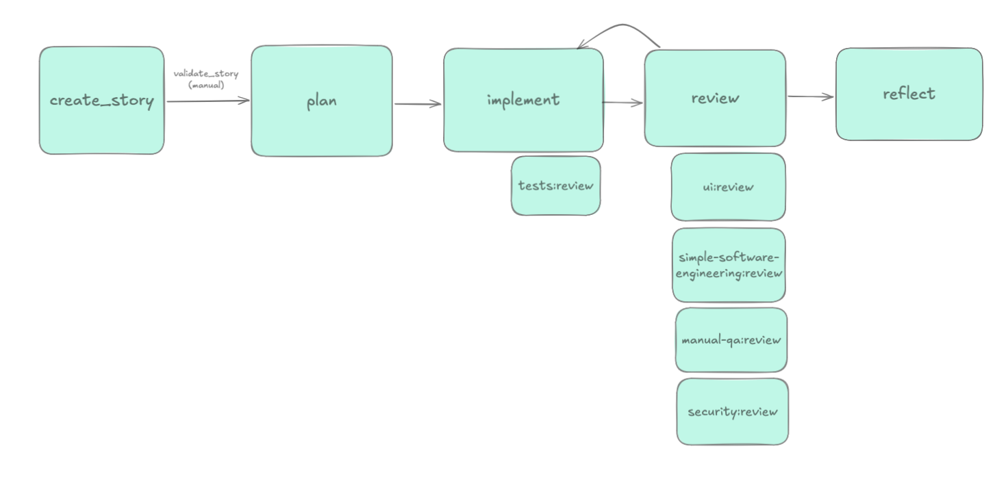 - Orchestrates multiple review agents to validate the implementation. Launches UI, architecture, manual QA, and security reviewers.