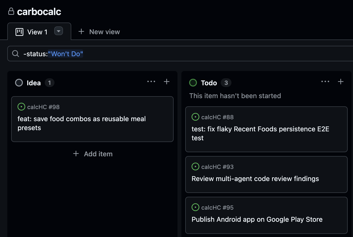 To manage tasks we use GitHub Projects with the classic Kanban board.